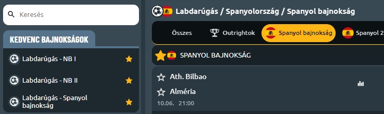 1A csillag megnyomásával megjelölheted kedvenc bajnokságaidat.