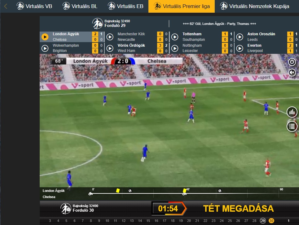 2Virtuális labdarúgásra, virtuális kosárlabdára és virtuális teniszre is tudsz fogadásokat leadni.