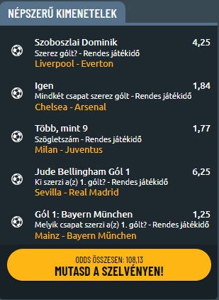 1Ebben a menüpontban megtalálhatod az összes aktív Szuper oddsot, valamint megtudhatod, hogy miképp tippelnek rájuk fogadóink.