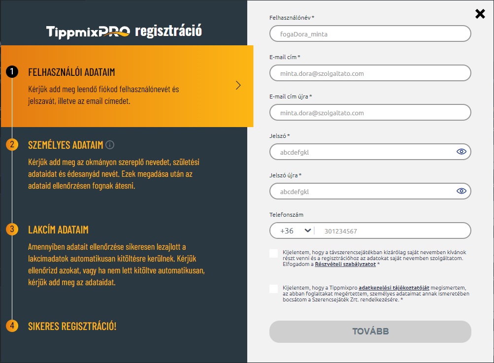 1Fontos, ha már volt Tippmixpro fiókod, nem kell új regisztrációt létrehoznod! Kérj jelszó-emlékeztetőt vagy az adatok egyeztetéséhez hívd ügyfélszolgálatunkat a 06-1/201-0580-as telefonszámon (H-V: 7-23h)!