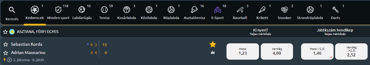 2 Elérhetővé váltak a gyorspiacok is a labdarúgás, a tenisz, a kézilabda, a kosárlabda, az amerikai foci vagy éppen a röplabda kapcsán az egyes mérkőzések közben: ennek köszönhetően az éppen zajló találkozók bizonyos időszakaira lehet tippeket leadni.